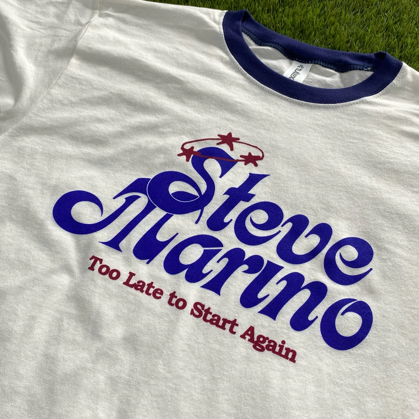 Designed merch and wrote the PR bio for musician Steve Marino’s 2023 album Too Late To Start Again.